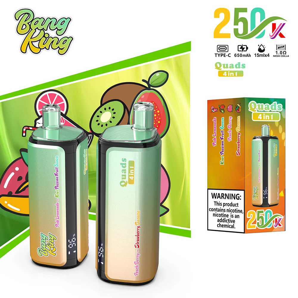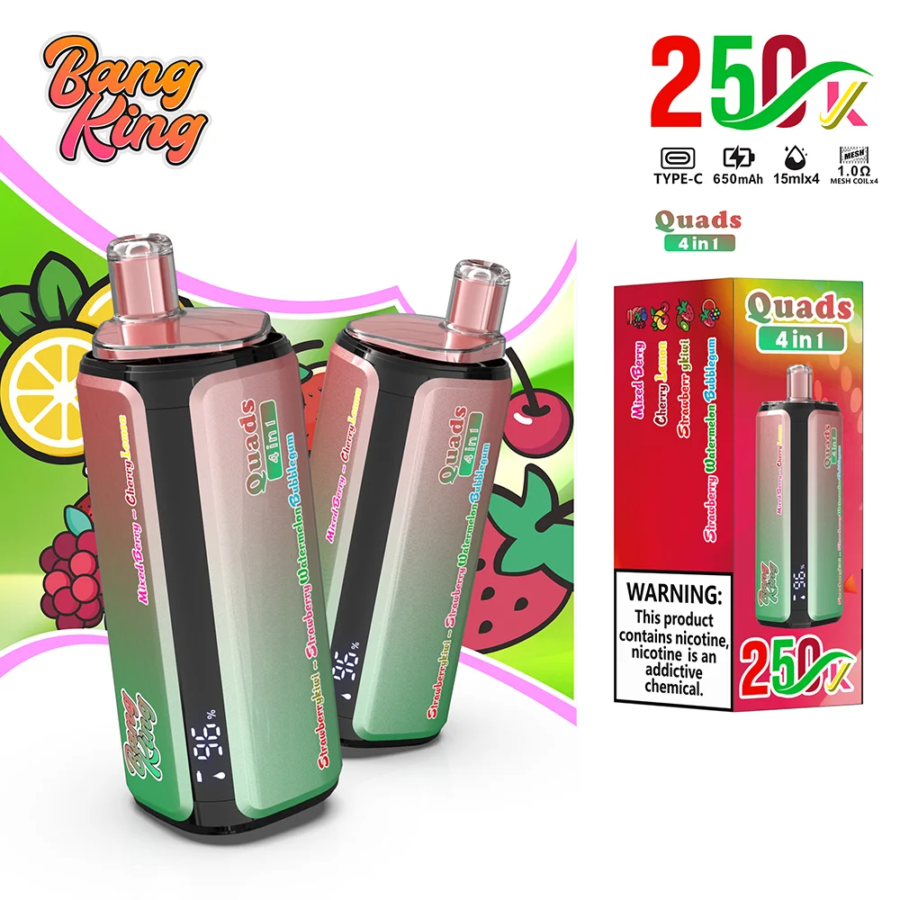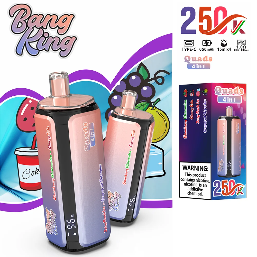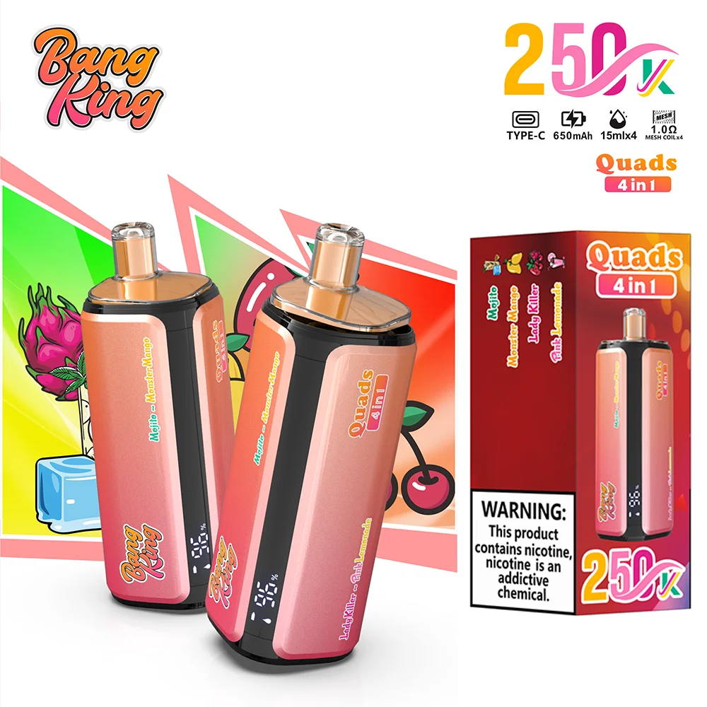 Bang King 250K Puff Vape | 4 in 1 Smaken Wegwerpvape Rijke Smaak Oplaadbaar