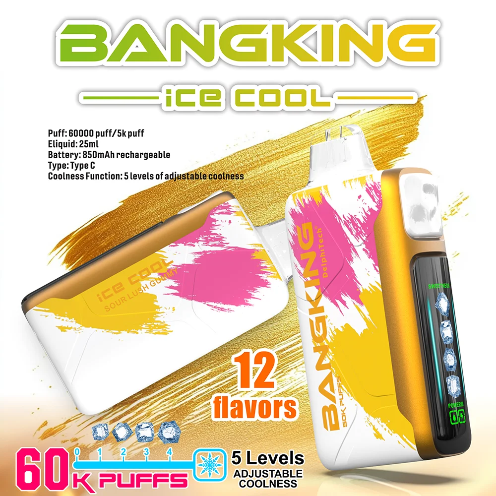 De Bang King 60k vape (Icy Edition) heeft vijf instelbare niveaus van koeling. Voorzien van een 1.0Ī© Mesh Coil en een 850mAh Type-C batterij, stelt het gebruikers in staat hun koelingservaring aan te passen terwijl ze genieten van enorme wolken en rijke smaken. Beschikbaar in 12 premium smaken, bestel nu.