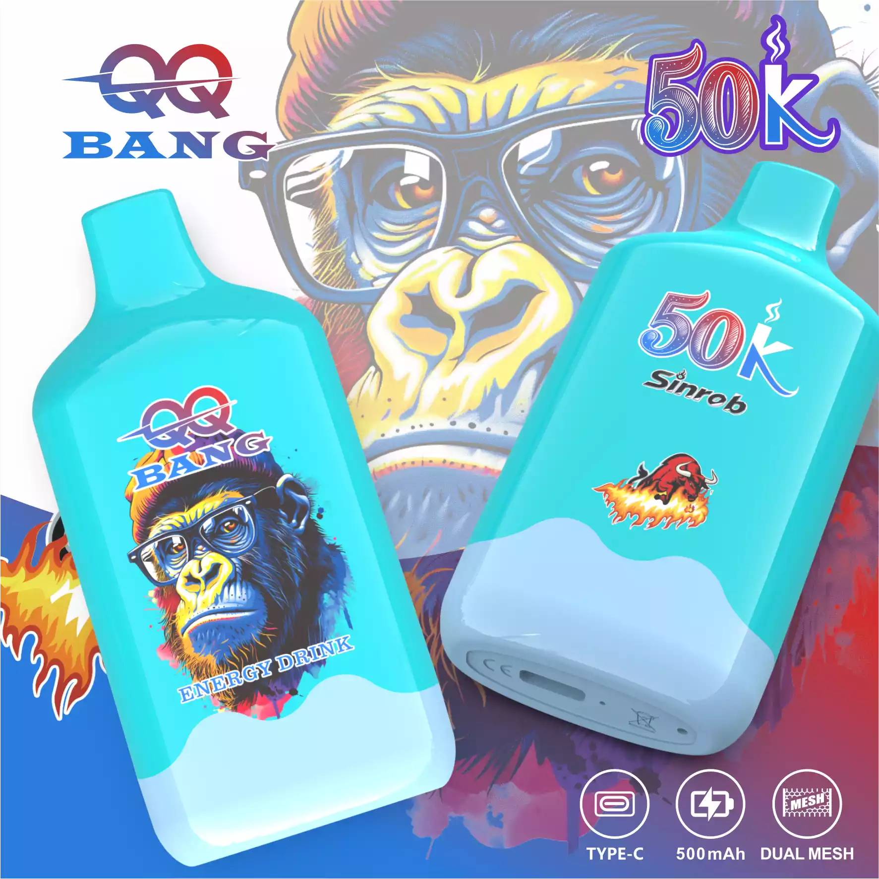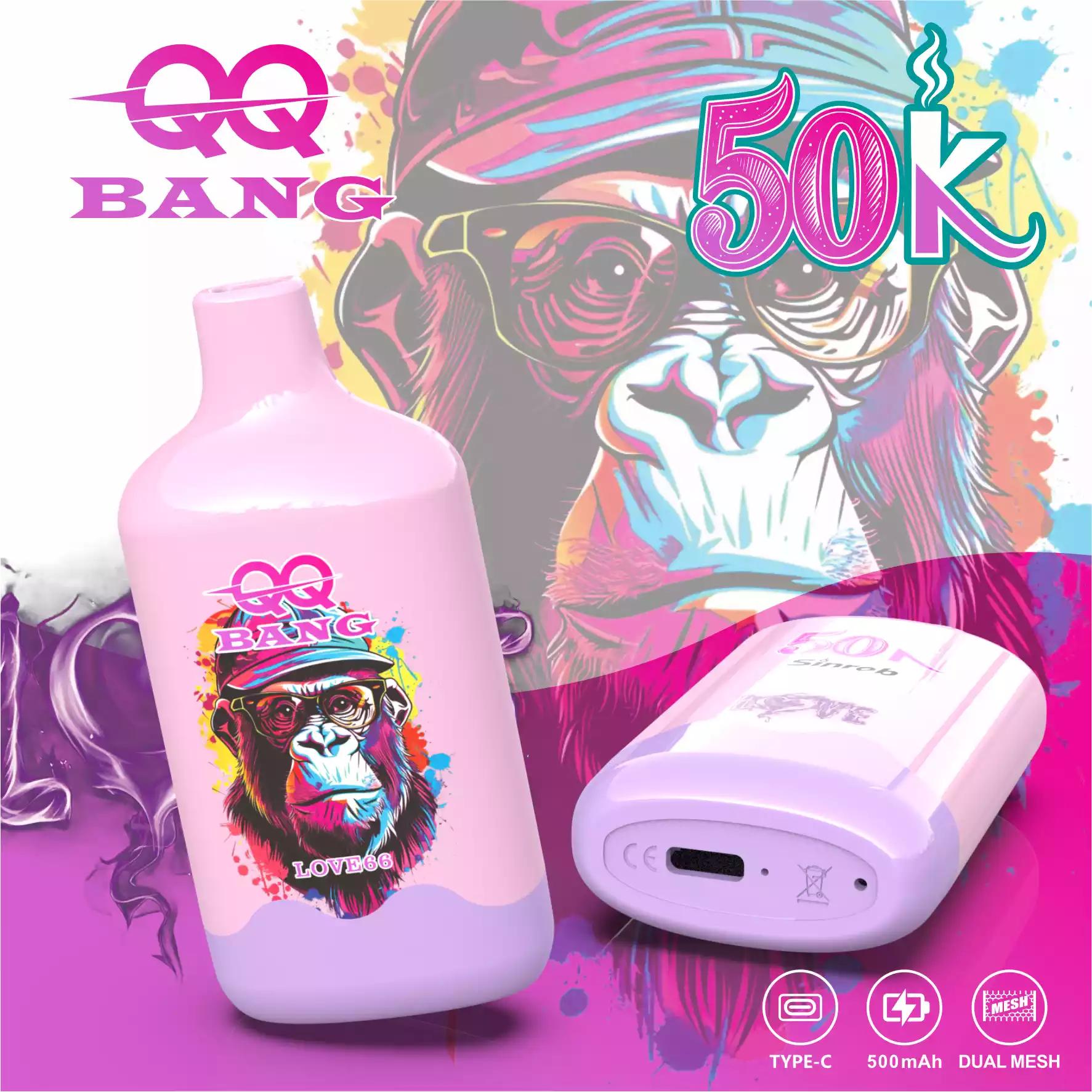 QQ Bang 50000 Puffs Wegwerp Vape | Aap Ontwerp | Dikke Smaak Grote Wolken